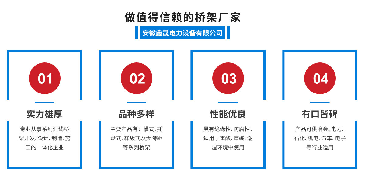 - 安徽鑫晟電力設(shè)備有限公司是專注從事系列匯線橋架開發(fā)、設(shè)計、制造、施工的一體化企業(yè),主要產(chǎn)品有:槽式、托盤式、梯級式及大跨距等系列橋架。產(chǎn)品選用冷軋或熱軋鋼板井對...